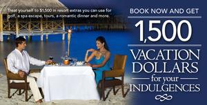 Cancun Palace Resorts are pleased to offer upto $1500 vacation dollars for your indulgences. Book 5 nights or longer and receive vacation dollars for a maximum value of $1,500 per room/per stay. Book 3 or 4 nights and receive vacation dollars for a maximum value of $750.00 per room/per stay.